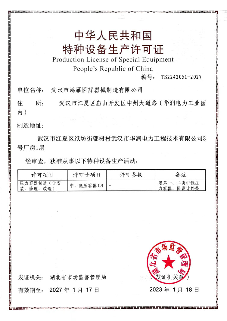 武漢市鴻雁醫療器械制造有限公司主要從事醫療器械、各規格壓力蒸氣滅菌器以及食品、環保等設備的制造。公司產品受鍋爐壓力容器檢驗研究院和食品藥品監督管理局雙重監檢,每臺設備均有自己的身份銘牌。公司始終不渝地堅持科技興企、科學管理的方針,重視科技進步為企業帶來的機會和效益,努力將新技術成果轉化為產業優勢,秉持以品質穩定、產品革新、客戶滿意為公司宗旨。與客戶共創雙贏的局面,分享各項成果,回饋社會。